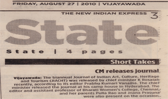 The Journal of Indian Art, Culture, Heritage and Tourism has been enlisted in the Country Book of World Records in the First of its' Kind Category for publishing, distributing and disseminating scholarly articles amidst the academic circles free of cost. Considering its' high academic and research value, Dr. Y.S.R. National Institute of Tourism & Hospitality Management, Hydrabad entered into exchange of Journal publication volumes, wayback in 2012. Also, it has been included in the popular journal list of the Indira Gandhi National Tribal University – Madhya Pradesh and considering the scholastic importance of the Journal, the Yogi Vemana University, Cuddapah subscribed for this journal.